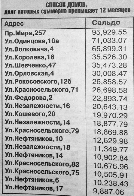 В домах по ул.Савчука, Авиаторов, Гетмана Полуботка, Белова и по пр.Мира жильцам одиннадцати квартир, задолжавшим "Облтеплокоммунэнерго” приличные суммы, уже "отрезали” горячую воду. Примечательно, что долги в сумме от 4 000 до 8 000 тысяч умудрились накотіть семьи, которые никак нельзя назвать необеспеченными. На что надеялись?