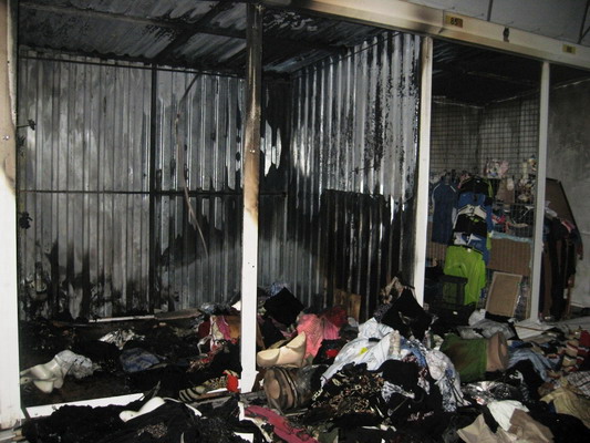 Повідомлення про подію до оперативно-диспетчерської служби Головного облуправління МНС надійшло о 00:35. Коли відділення рятувальників через п’ять хвилин прибуло на місце пригоди, вогнем було охоплено шість бутиків. Внаслідок того, що всередині споруд знаходилась велика кількість горючих матеріалів (одяг, картонні упаковки і т. ін.), вогонь дуже швидко розповсюджувався через металеві перегородки на сусідні секції. Завдяки оперативним та професійним діям працівників МНС, пожежу було локалізовано через дванадцять хвилин та врятовано матеріальних цінностей на загальну суму понад 200 тис. грн.