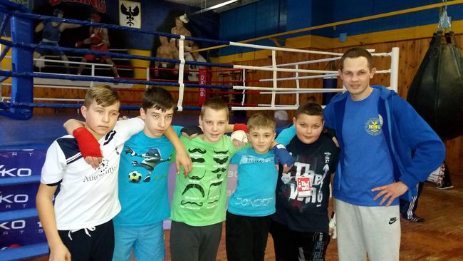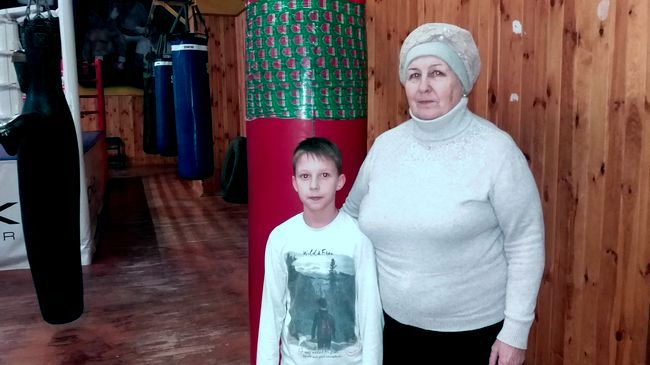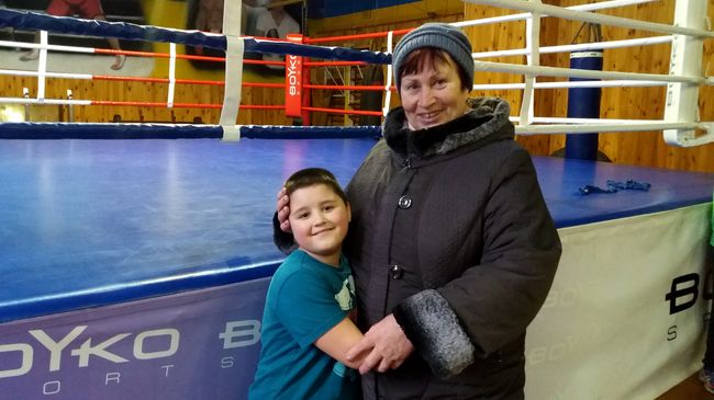 Так, 8-летнего Диму Шиндора привела на тренировку бабушка Надежда Васильевна. Папа записал сына в клуб в начале года. Мальчик старательный, слушает и выполняет указания тренера. Ему очень нравится заниматься боксом.