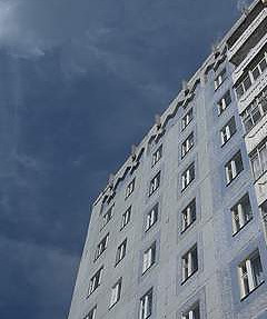 — Во-первых, наш дом — первый 17-этажный дом в городе. Это вентиляционная фасадная система. Такая на 30 процентах Киева стоит, — говорит технический директор «Укрсивербуд» Владимир Сахненко. «Укрсивербуд» (генеральный директор Виктор Вереша) — генподрядчик, заказчик — город. — Зеленое — минерально-ватные плиты, утеплитель. Поверх них накладывается синяя и белая фасадная плитка. Она из Финляндии.
