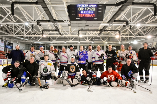 Єдиною командою гравців назвати важко — у всіх різна форма — біла, червона, синя, чорна. Зрозуміло, що хокеїсти добре знають один одного і під час гри не сплутають супротивника з партнером. А от новачку розібратись буде важко. Тим не менше є лід, а отже є і хокей! Про Чернігів тут нагадують лише напис на каністрі з шайбами і чорні гербові орли на формі двох гравців...