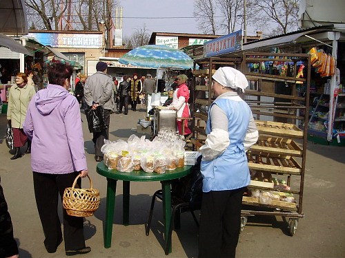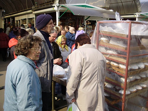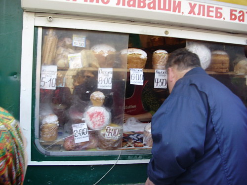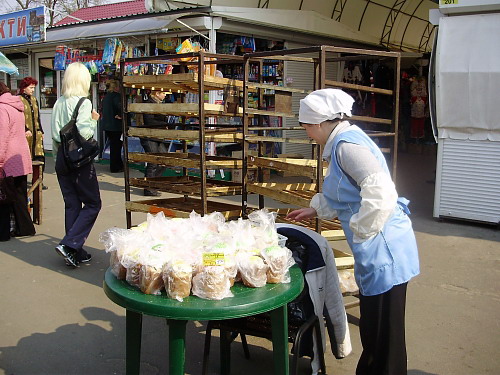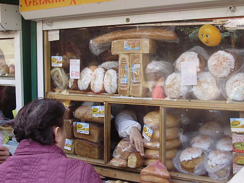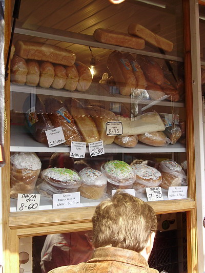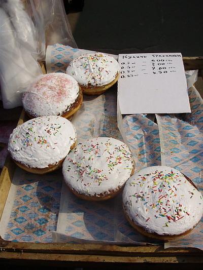 Итак, что же нам удалось выяснить: пасочки большие и маленькие продавали на Центральном в 7-ми хлебных ларьках возле главного входа и на проходы вывозили специальные стойки работники черниговских фирм. Цены на пасхальные куличи с изюмом колеблются в таком диапазоне: