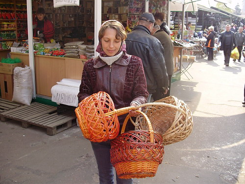 А сколько на рынке всевозможных плетеных корзин! Купив корзинку, вы можете положить в нее паску, яйца и пойти их святить в церковь. Цены колеблются от 30 до 60 гривен. Зависят от размера и тонкости работы. Заметили даже королеву корзин – с крышкой, но такая скорее больше подойдет для пикника, ее цена 200 гривен. А когда продавец узнала, что мы журналисты снизила цену до 150: купите, напишите, а мне реклама будет! – резонно заметила она.