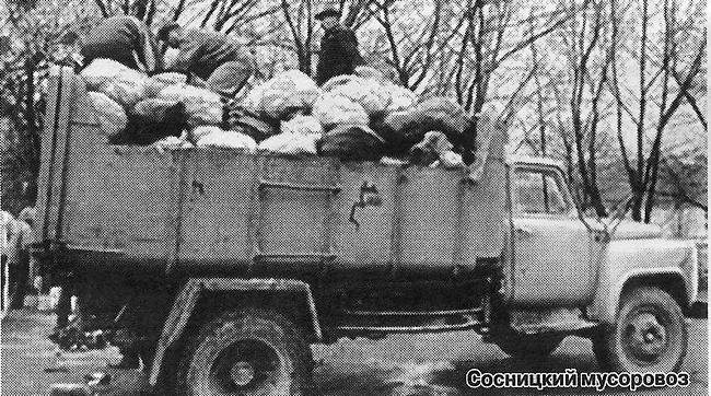 Раньше мусоровоз дважды в месяц — согласно составленному графику — забирал упакованные в мешки отходы возле дворов тех жителей, которые заключили договор с коммунальным предприятием «Сосницкое КЖУ» и, соответственно, платили за эту услугу. Таких было менее 500 (в посёлке — около 7 тыс. населения).