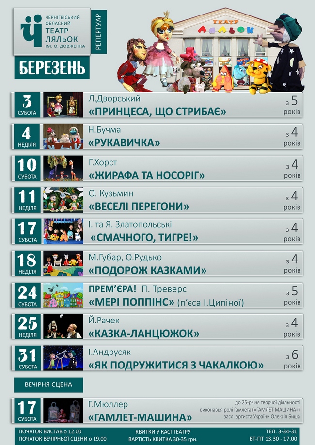 Репертуар Черниговского областного театра кукол имени Довженко на март: