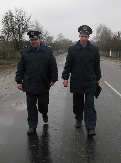 Міліціонери в цей час розділились на групи і вирушили на «відпрацювання». Я пішла разом із колишнім вересочинським дільничним Богданом Смалем і нинішнім – В’ячеславом Кабашком. На вулиці був дощ. Йти довелося не лише по калюжам, а й по багнюці, бо ґрунтові стежки маленьких вуличок перетворились на суцільне болото.