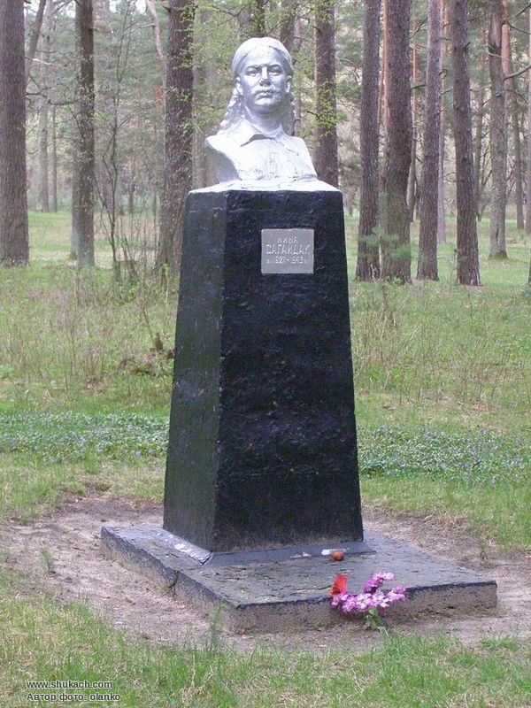 Памятник (бюст на постаменте) подпольщице из Сновска Нине Сагайдак был установлен в 1967 году в местном лесопарке. Тут девушку расстреляли весной 1943-го. Ей было всего 16.