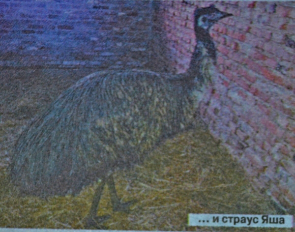 Местные знают, что у нас имеется большое хозяйство. Иногда нам приносят домашних любимцев, которые хозяевам стали не нужны. Например, так к нам попали страусы эму. Их хозяева уезжали из Нежина и решили подарить нам пару этих птиц. Самочка, к сожалению, сломала ногу (эту травму страусы переносят очень тяжело) и умерла. А вот самец, которого мы назвали Яшей, живет у нас до сих пор. Летом — в просторном вольере на свежем воздухе, а зимой мы прячем его от холодов в пристройке у свинарника.