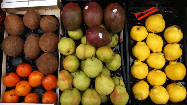 На Центральном рынке в продаже азербайджанская айва, клубника из Испании и кокосы из Таиланда