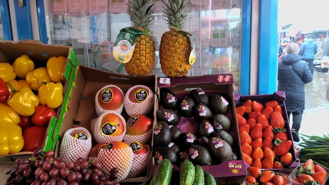 В определенном местечке – у Татьяны продаже великолепные экзотические фрукты, привезенные в холодную Украину из жаркого тропического мира: киви, лайм, авокадо, манго и ананас, испанская клубника.