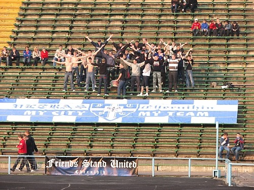 Несмотря на разрозненность болельщиков (два моба на крайних секторах восточной трибуны и группа по центру западной), поддержка «Десны» в этом матче была одной из лучших на моей памяти. Отличное взаимодействие, синхронные перекрикивания между собой и ни на минуту не замолкающее «Чер-ни-гов-дес-на!»