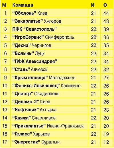 «Десна» (Чернигов) - «Оболонь» (Киев) - 3:2 (Пичкур, 59, Зейналов, 60, Шарпар, 88 – Куценко, 30, Малыш, 85).