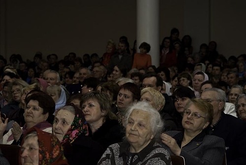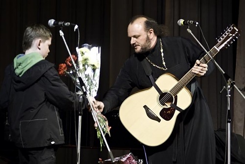 В зале все места заняты под завязку, а за 15 минут до начала концерта посетителей вообще перестали пускать. Такому успеху может позавидовать любая звезда! Отец Владимир в тот вечер достойно выступил, за что зрители буквально завалили его цветами.