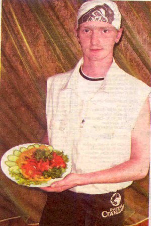 Ожидали увидеть большую тетю в белом халате. А к нам вышел худенький симпатичный парень. Сергею Разуменко 25 лет. Поваром работает 4 года. Он единственный мужчина среди персонала кафе, кроме, конечно, хозяина.