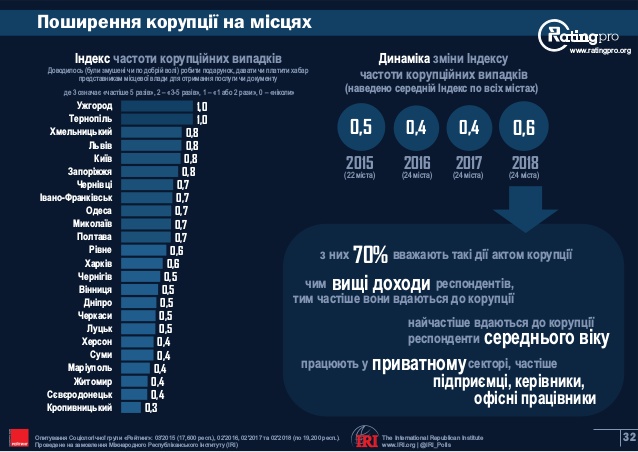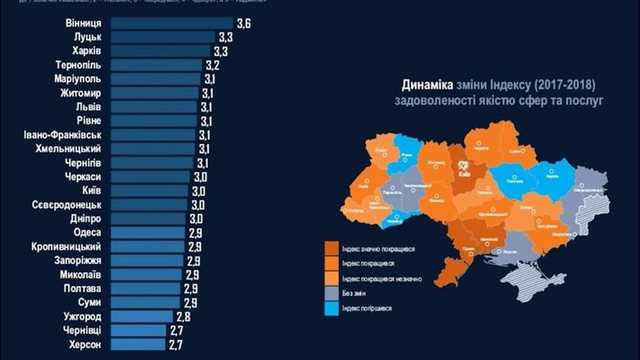 Столица в этом рейтинге разместилась ровно посередке. Если у Винницы сводный балл - 3,6 (у Луцка и Харькова по 3,3 балла), то у Киева три балла ровно. Ну, а замыкает рейтинг с 2,7 баллами Херсон и Черновцы.