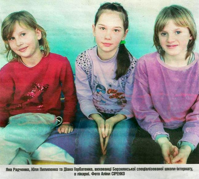 — У п’ятницю, 23 лютого, зранку мені дуже погано було, — розповідає 16 березня 14-річна учениця інтернату Діана Камишева з села Стрільники Бахмацького району. — Голова трохи боліла, живіт та шлунок. Пішла до лікаря — живіт переболів після таблетки. Та по обіді в п’ятницю стало ще гірше — температура піднялась. До 38,7. Трохи нудило. А ввечері мені викликали «швидку». Мене забрали до лікарні. В суботу почався пронос, дуже сильно болів живіт.