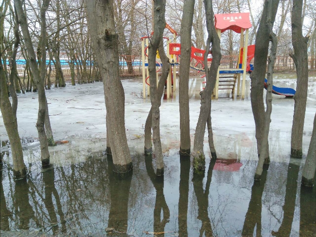 Фото затопления Проспекта Победы выслал наш читатель. Он сообщает, что к дому №108г вода пока не подобралась, а вот детская площадка возле Дворца детей и юношества подтоплена. Также в опасной близости к воде оказались дома частного сектора, что находятся в этом же районе.