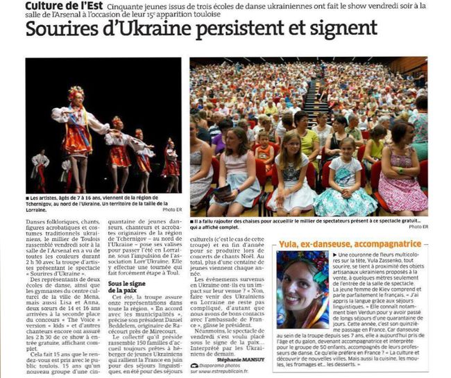 Статья о танцевальном коллективе «Веснянка» во французской газете