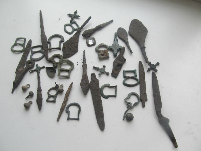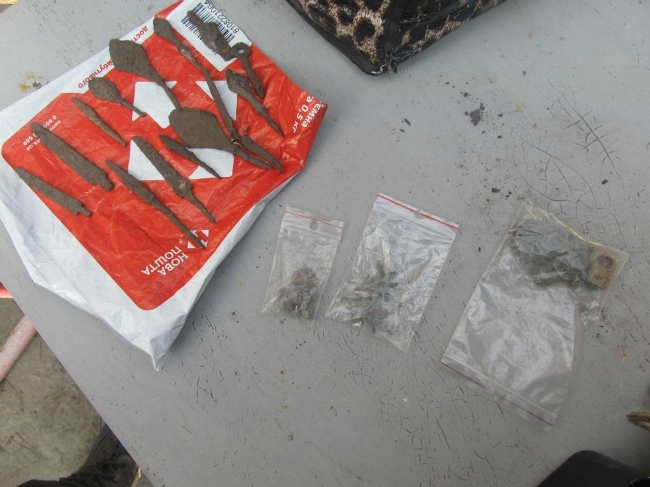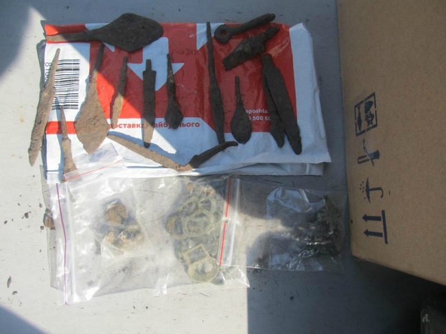 Спільною оглядовою прикордонно-митною групою в багажному відсіку в рюкзаку водія, 51-річного громадянина України, виявлено значну кількість предметів старовини, а саме 14 наконечників до стріл та списів, 12 пряжок, 5 хрестиків, 6 ґудзиків та один щиток персня. Всі предмети датуються орієнтовно ХІV - ХV століттями.