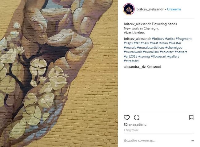Черниговскую работу автор назвал “Цветущие руки”. Фото опубликовал у себя на страничке в инстаграме.