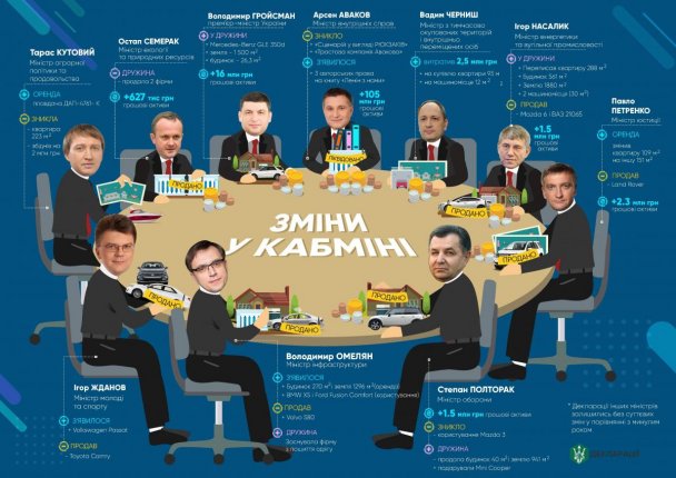 В декларации министра внутренних дел Арсена Авакова появилось три авторских права на украинскую, русскую и английскую версии книги "Ленин с нами?". Также в 2017 году глава МВД ликвидировал "Трастовую компанию Авакова" и стал безоговорочным лидером среди членов Кабмина по росту денежных активов — за год его состояние выросло на 105 млн гривень.