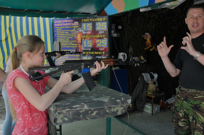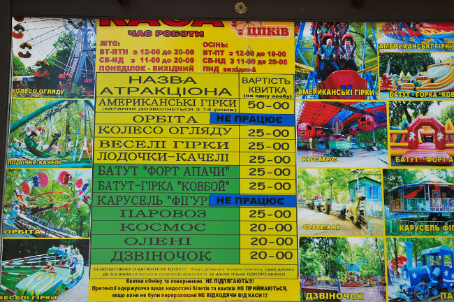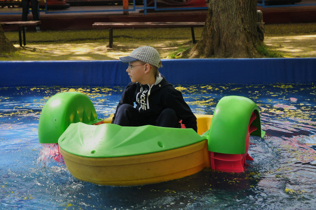 День выдался теплым, и многие жители города целыми семьями отправились в главный городской парк, любимое место отдыха, где обычно проходят все массовые мероприятия. Больше всего развлечений здесь конечно для детей. Работают почти все аттракционы, стоимость билетов на них от 20 до 50 гривен. Территория парка приведена в порядок, включены фонтаны.
