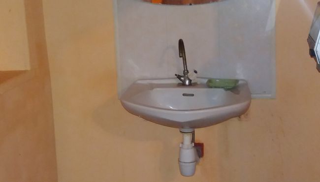 В этой небольшой аккуратной столовой, также, есть место, где можно соблюсти правила личной гигиены,