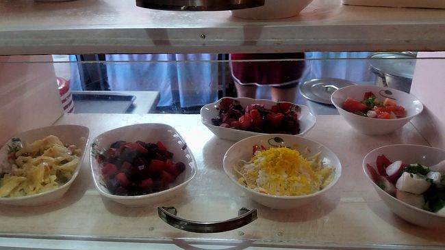 В зоне раздачи – красочное, более подробное меню с указанием цен и веса блюд.