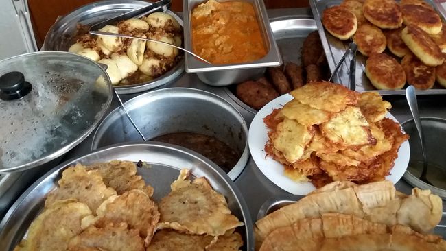 Но, можно поесть и за 32.22 гривен, если взять, например, винегрет (6.48), борщ (6.90), отварной рис (5.54), котлету (8.60), кусочек хлеба (0.70) и компот (4.00). А если не брать винегрет, то полноценный обед будет стоить 25.74 гривен.