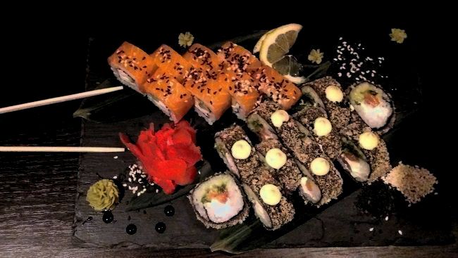 - Ни одно блюдо не может похвастаться такой многоликостью и палитрой вкусовых оттенков. Перечислять варианты можно бесконечно! У нас есть классические роллы с лососем, угрем, креветкой, мидиями, сливочным сыром, кунжутом, грибами, кальмаром, авокадо и даже роллы из сала!