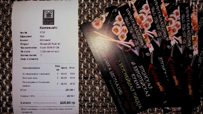 Сделать заказ можно и по телефону. Тогда ваши любимые роллы доставят прямо на дом или в офис. Если заказ превышает сумму в 400 гривен, то доставка бесплатна. В суши-баре есть терминал, то есть можно рассчитаться картой.