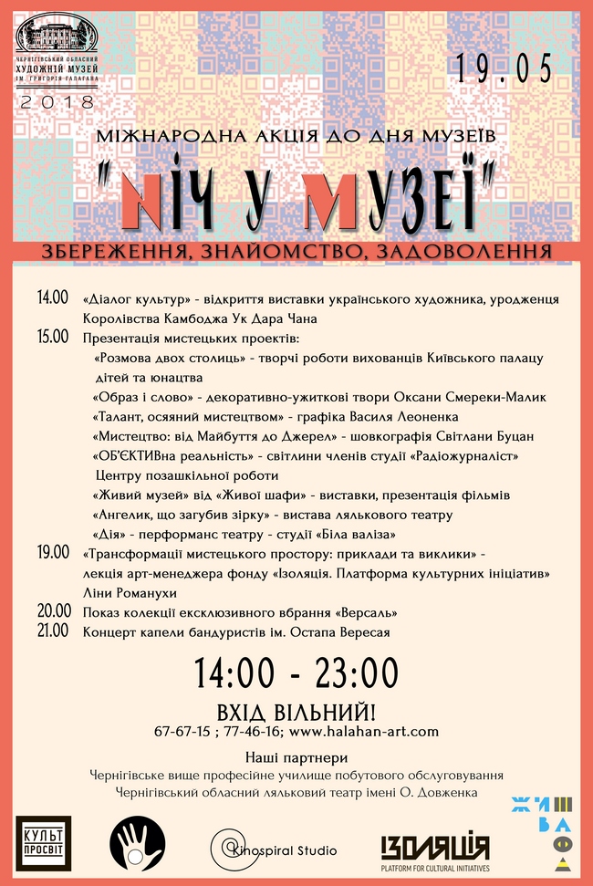 19 травня з 14:00 по 23:00 у Чернігівському обласному художньому музеї імені Григорія Галагани проходитиме Міжнародна акція до Дня музеїв «Ніч у музеї».