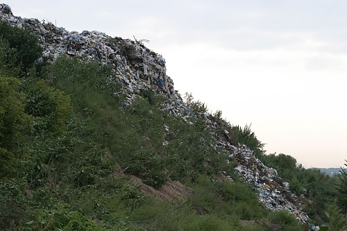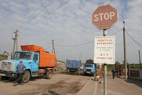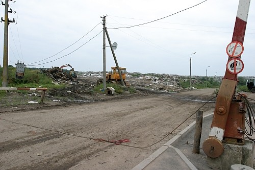 На пропускном пункте полигона стояла пара машин с прицепами и трактор. С вершины свалки ветер доносил вонь.