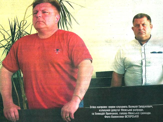 П’ятого травня Менський районний суд оголосив вирок Геннадію Примакову та 47-річному Валерію Гайдукевичу, колишньому депутату Менської райради, — п’ять років позбавлення волі кожному. Так, як і просив прокурор обласної прокуратури Дмитро Розенко. Також суд постановив позбавити Примакова дев’ятого рангу з позбавленням права обіймати посади в органах місцевого самоврядування на строк три роки.