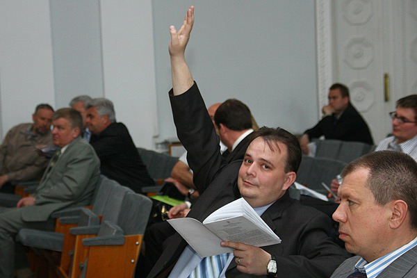 На 37-й сессии горсовета, которая началась 30 апреля, в четверг в этот раз присутствовало 39 депутатов. Многие не явились по уважительным и не очень причинам. Наибольшую активность вызвали вопросы о передаче коммунальному предприятию «Парковка и рынок» земельных участков для установки пивных палаток и попытка выставить на повестку дня вопрос об использовании символов времен Великой Отечественной войны для украшения административных зданий города.