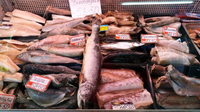 Рыбный павильон, в котором всегда был довольно большой выбор свежезамороженной, соленой и копченой рыбы закрылся. В другом – гораздо меньший ассортимент рыбы.