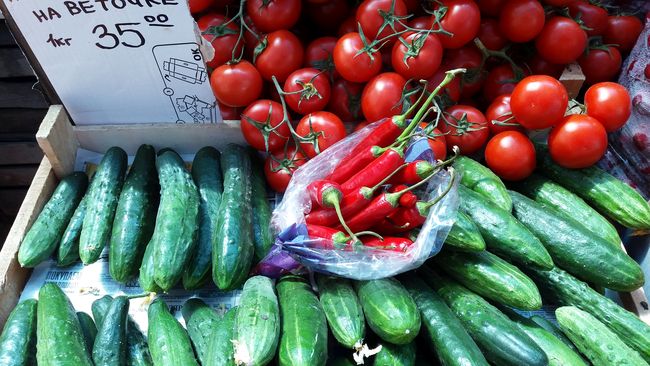 Теперь об овощах. Именно в это период, в конце мая, созревают наши помидорчики и огурчики, кабачки, капуста, зеленый лук, и радуют нас буйством красок, своей свежестью, наполненностью витаминами и необходимыми веществами для организма человека.