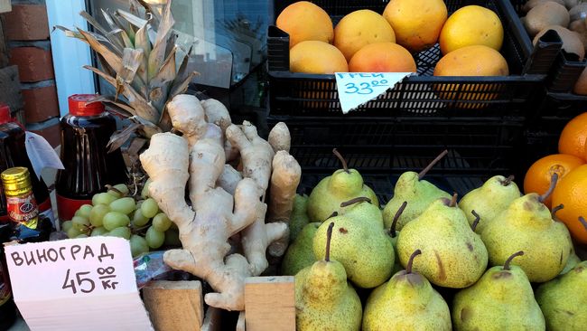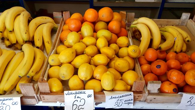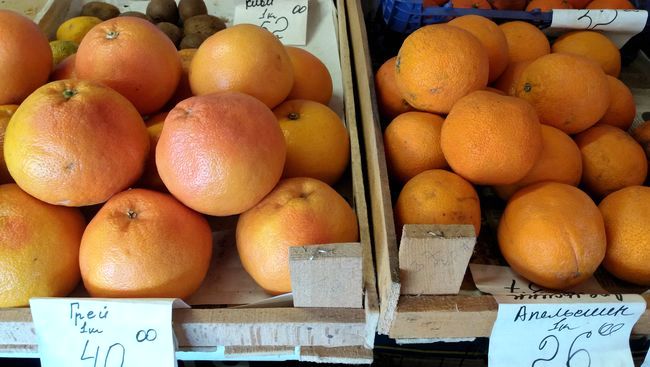 А вот на лимоны поднялись. Заканчивается сезон мандаринов, но еще остались не совсем презентабельного вида по 38 гривен за 1 кг. Зато в продаже всегда есть апельсины и грейпфруты.