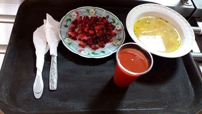 Обед из фасолевого супчика, винегрета и томатного сока будет стоить всего 9.49 гривен.