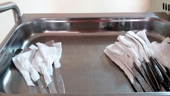 2. Приятная мелочь: приборы завернуты в салфетки.