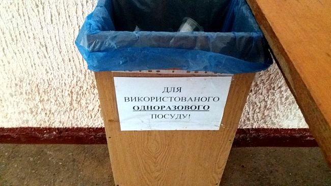 7. Есть мусорный бак для использованной одноразовой посуды и стол для грязных подносов.