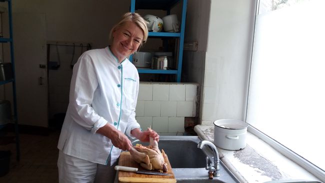 Но заведующая производством Ирина Николаевна Паладий рассказала, что у них своя специфика: студенты - будущие технологи готовят разные блюда, а учащиеся других факультетов и преподаватели в том числе, пробуют их во время обеда.