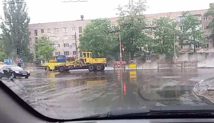 Сегодня, 21 мая с утра моросит дождь, который к обеду несколько усилился. Читатели Gorod.cn.ua выслали в редакцию фото с регистратора, на котором видно, что асфальт прокладывают на ул.Рокоссовского. Они сообщают, что недовольны тем, что ремонтные работы ведутся в дождливую погоду.