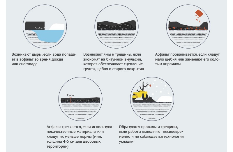 По всем стандартам слой асфальтобетонного покрытия укладывается в сухую погоду на сухое подготовленное основание. Не существует технологии (ни у нас, ни за рубежом), которая бы позволяла асфальтировать в дождь. В мокрой среде нельзя достичь нужного уплотнения горячей смеси. Нет уплотнения - жди быстрого разрушения. Срок службы асфальта при соблюдении всех технологий - 3-5 лет. Потом верхний слой нужно менять. В сырую погоду (после дождя, например) можно укладывать холодные смеси. Но их используют для быстрой заделки, при ликвидации аварийной ситуации, ямочном ремонте. Но даже с этими смесями не работают в дождь, - сообщает наш читатель.