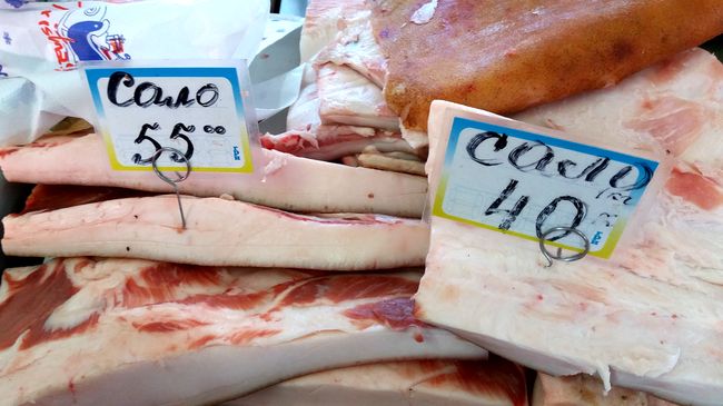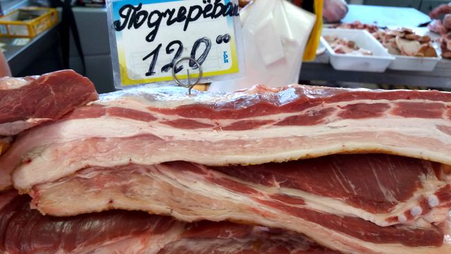 Например, подчеревок продают по 120 гривен за килограмм, а в Масанах неделю назад он стоил 110; боковина здесь – 110, в Масанах – 100; грудинка стоит 95 грн., на рынке в Масанах – 65, стегно без сала здесь 125 (в Масанах 115 грн.).