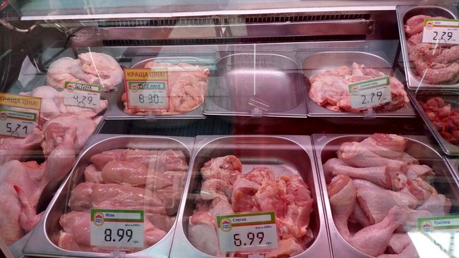 В отдельных магазинчиках от производителей «Наша Ряба» и «Чебатурочка» в продаже есть курятина. Также, у продавца киоска ТМ «Чебатурочка» заранее можно заказать кур-бройлеров (целых и рубленых), мясной фарш, домашних кур, уток, индюка, свиное мясо оптом и в розницу.