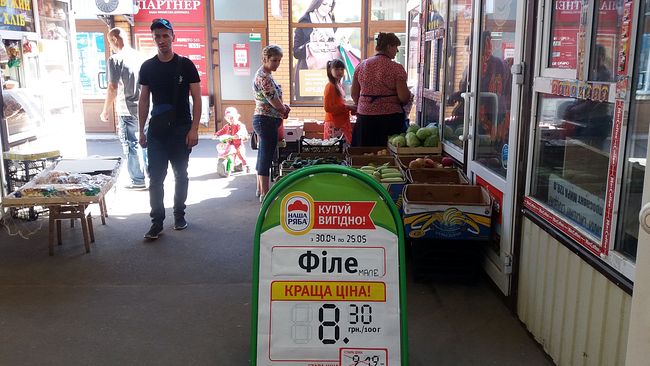 Цены особо не отличаются от других рынков. А цена на филе упала от 96.90 гривен до 83 на филе небольшого размера.