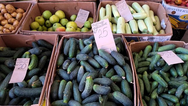 Отдельные прилавки в конце рынка – для продажи домашней молочной продукции. Летом - свежих овощей, фруктов, ягод, выращенных в своем саду и огороде, а зимой – консервированных и засушенных. Но сегодня продают только молочные продукты по ценам, которые зафиксировались на всех рынках города: