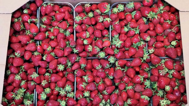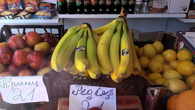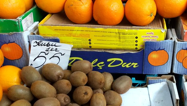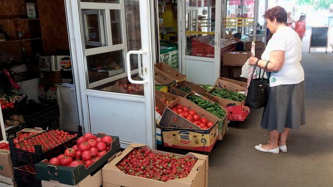 Фруктово-овощных павильонов на рынке всего три. В этот период времени наибольшим спросом пользуется черешня и клубника. Из цитрусовых, в продаже есть апельсины и лимоны.