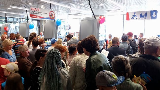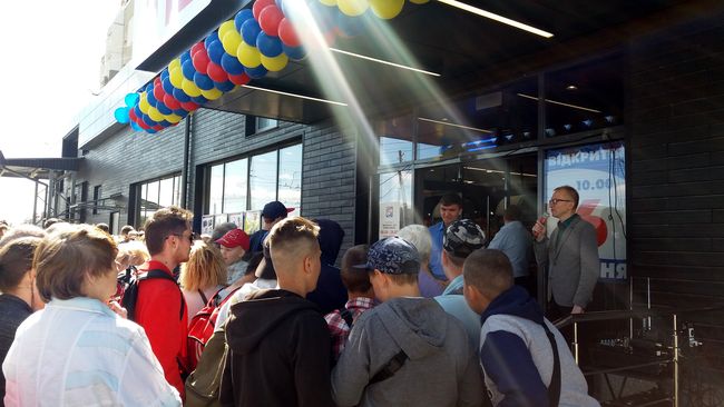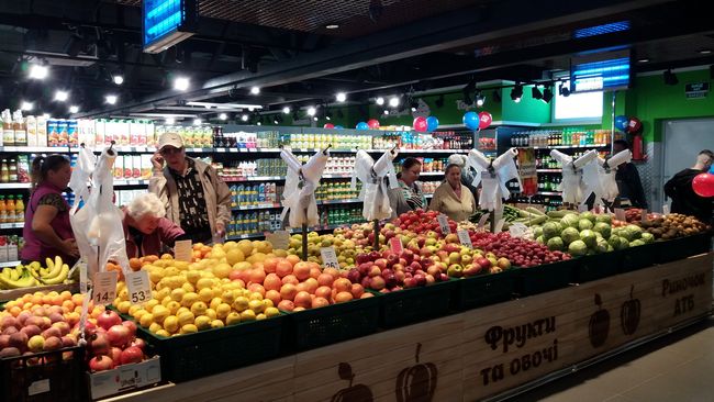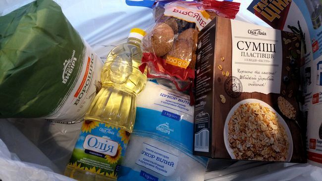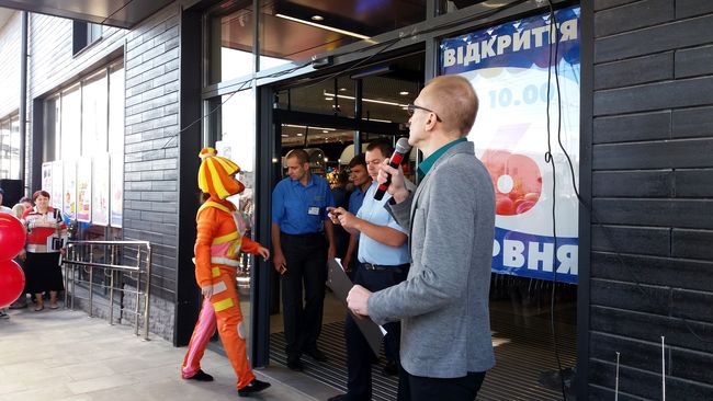 В связи с открытием, первых 10 покупателей ожидала приятная акция: при покупке товаров на сумму 100 гривен и больше одним чеком, они получили продуктовые наборы в подарок.